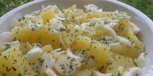 Krompir salata sa lukom i morskom ribom